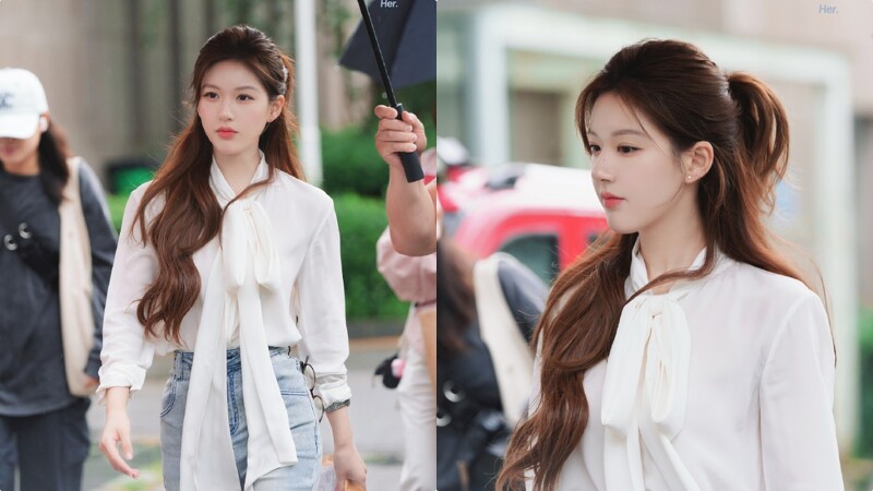 赵露思这款半紥髮巧思十足,在小丸子上方紥起高马尾,不仅自然托高髮型,还增添层次变化与丰盈感。整体造型温柔中带点俐落,无论是上班或日常外出,都非常合适!