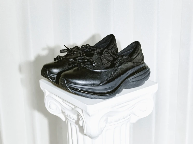 当运动鞋逐渐走进日常穿搭,如何在舒适机能与时髦外型中找到平衡,成了设计师们的新命题,HOKA也跟上了这个流行脚步,便是将自家最受欢迎的Bondi 系列,注入充满女性气质的玛莉珍轮廓,从鞋型的芭蕾繫带设计,到标誌性的厚底跑鞋科技,都让这双有着品牌未曾出现过的甜酷氛围。